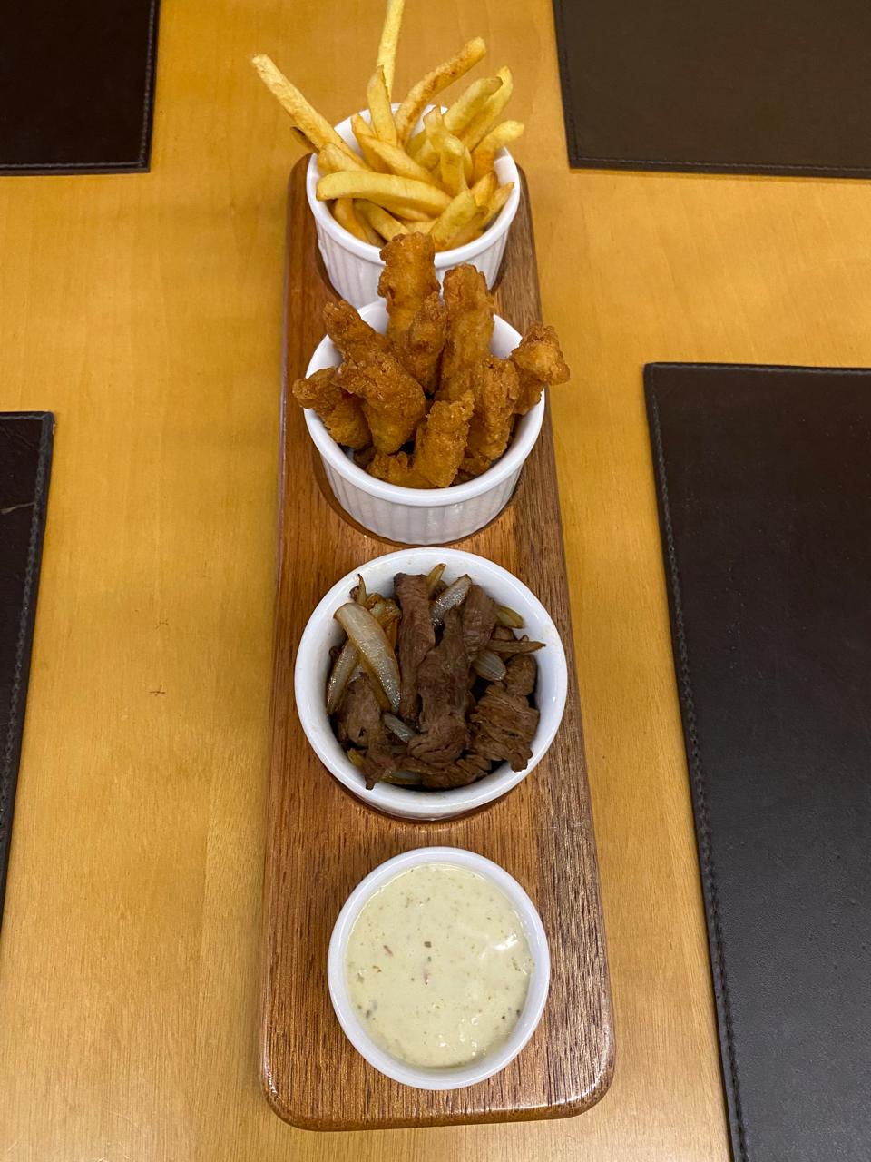 (Iscas de filé, peixe e batata frita)